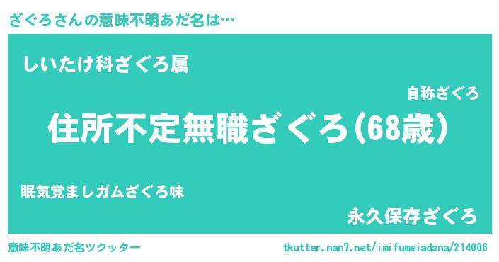 | 男性向けラノベタイトル風あだ名 | 『この素晴らしい世界にざぐろを!』 |