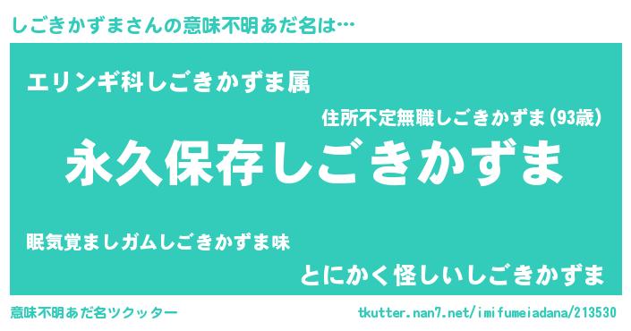 | 伝説のあだ名 | 『古文書に記された暗殺者しごきかずま』 |