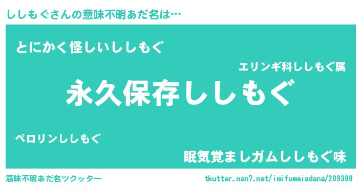 | ヘコむあだ名 | 『ししもぐ(小並感)』『ししを』 |
