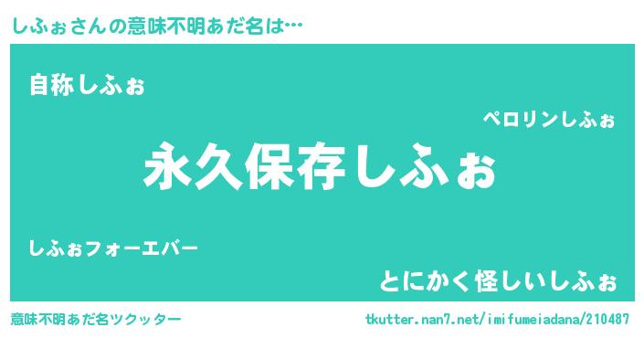 | ヘコむあだ名 | 『しふぉ(小並感)』『しふを』『牛乳』 |