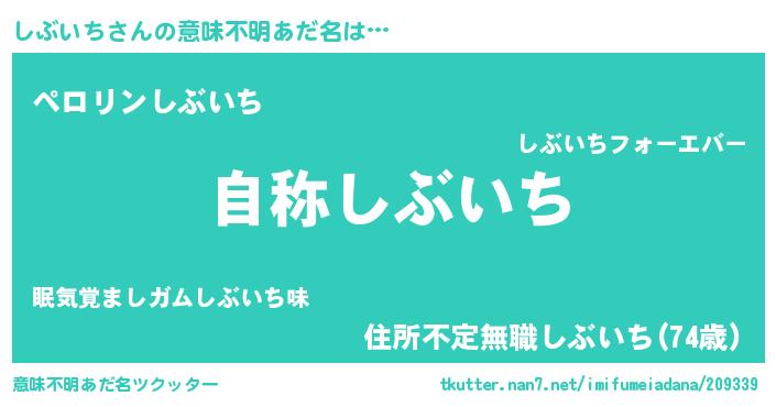 | 男性向けラノベタイトル風あだ名 | 『Re:しぶいちから始める異世界生活』 |