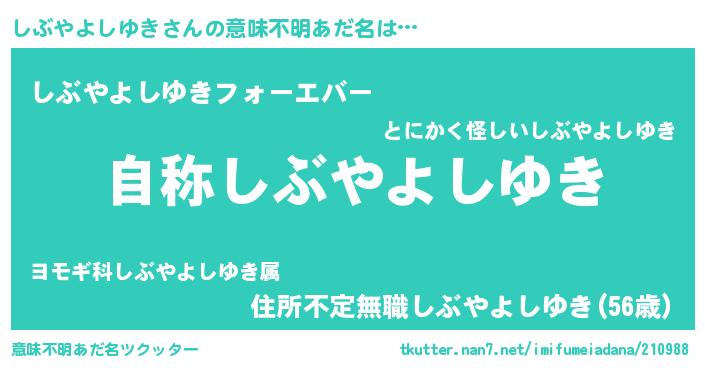 | 女子向けラノベタイトル風あだ名 | 『しぶやよしゆきアンティーク』 |