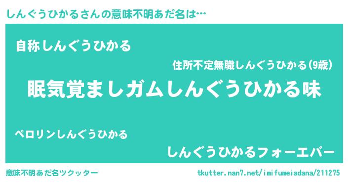 | ヒーロー風カッコイイあだ名 | 『慈愛の使者しんぐうひかる』 |