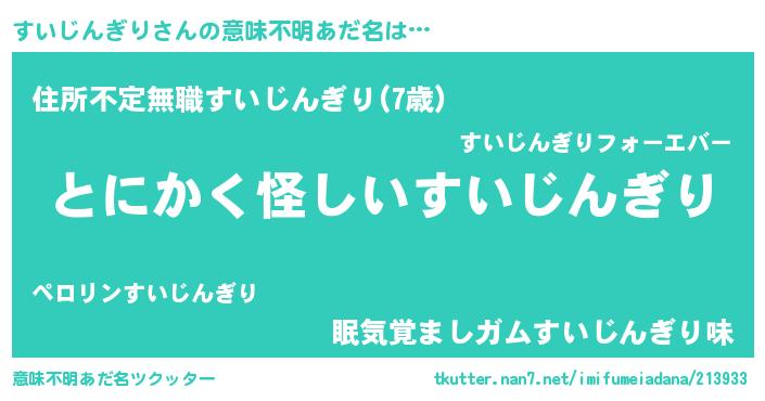 | 男性向けラノベタイトル風あだ名 | 『うちのすいじんぎりが世界を掌握している!』 |