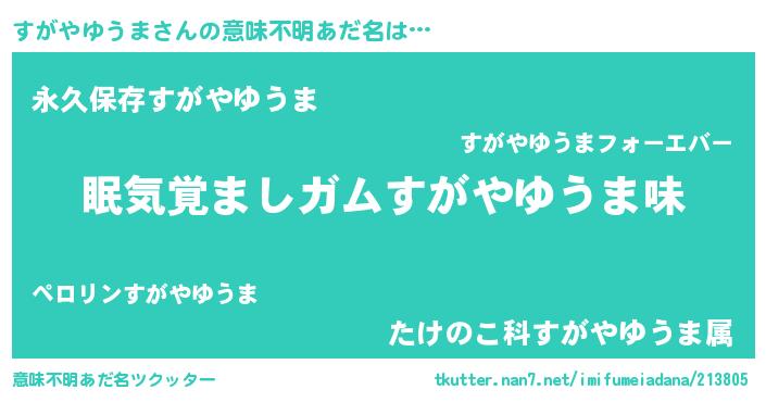 | ヘコむあだ名 | 『すがやゆうま(笑)』『酢こんぶ』 |