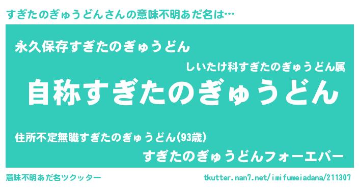 | 欧米人風あだ名 | 『すぎたのぎゅうどん・ステッグマイヤー』 |