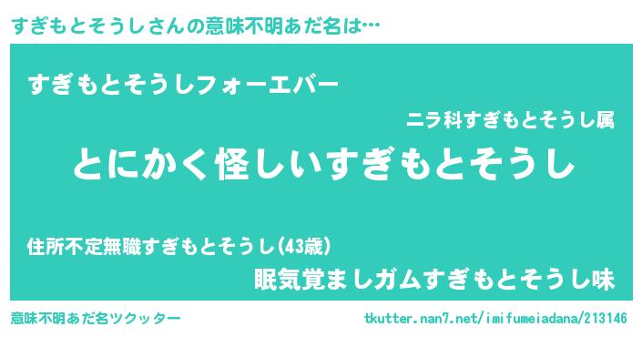 | ポケモン風あだ名 | 『ヒスギモトソウシ』『スギモダネ』 |
