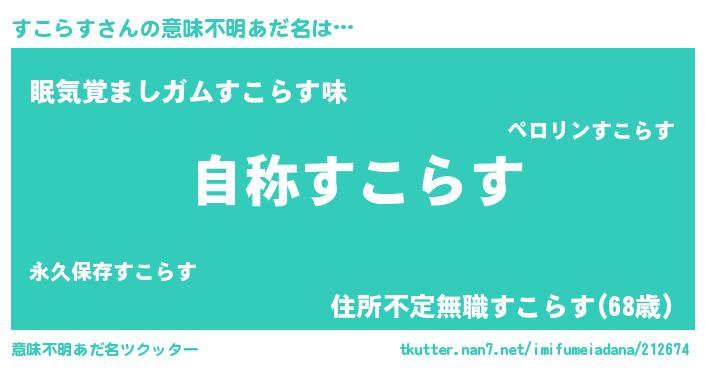 | ヘコむあだ名 | 『すこにゅー』『すこらす(苦笑)』 |