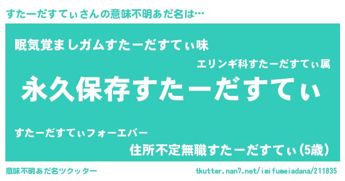 | 胡散臭い通販商品みたいなあだ名 | 『前代未聞の水素水…その名も「すたーだすてぃ」』 |
