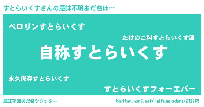| 肩書あだ名 | 『すとらいくす総統』『すとらいくす社長』 |