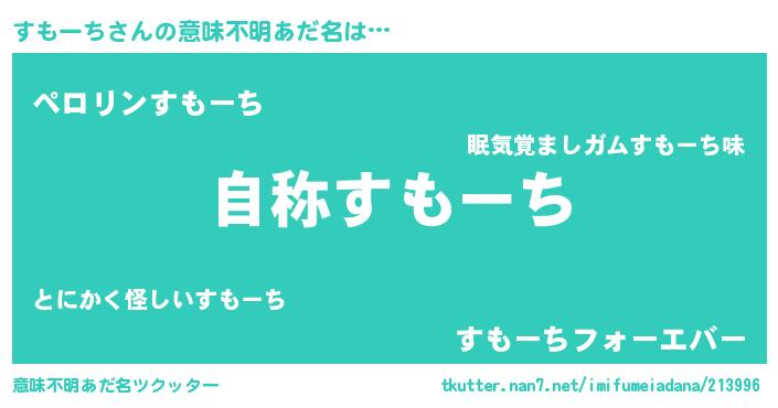 | 男性向けラノベタイトル風あだ名 | 『うちのすもーちが世界を掌握している!』 |