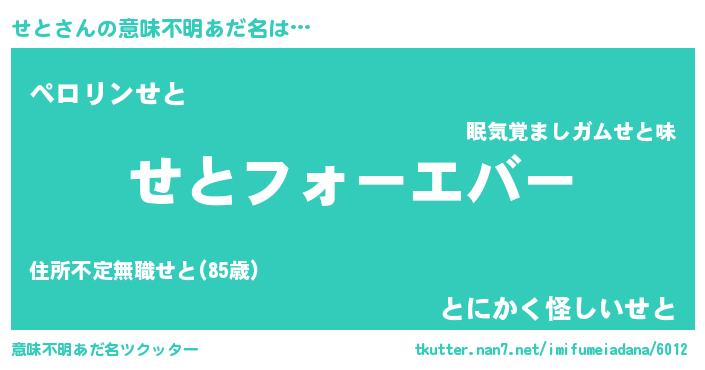 | ヘコむあだ名 | 『なまこ酢』『せともー』『せと太郎』 |