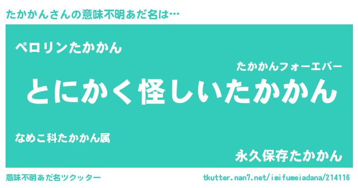 | 男性向けラノベタイトル風あだ名 | 『たかかんの嫁は女の子じゃないと思った?』 |
