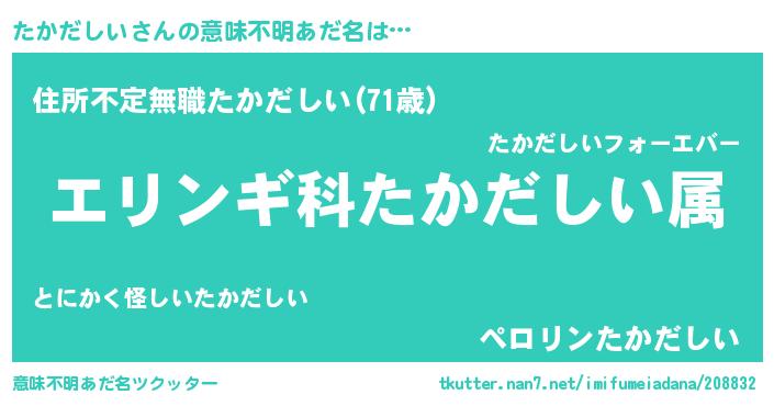 | 欧米人風あだ名 | 『たかだしい・ステッグマイヤー』 |