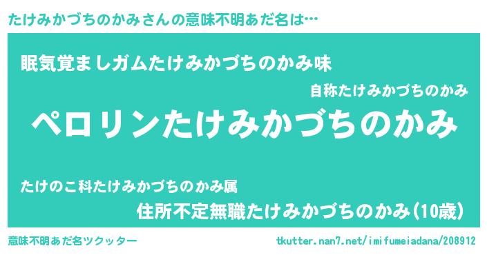 | ヒーロー風カッコイイあだ名 | 『スーパータケミカヅチノカミ』 |