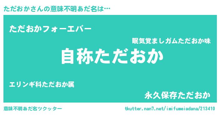 | 男性向けラノベタイトル風あだ名 | 『うちのただおかが世界を掌握している!』 |