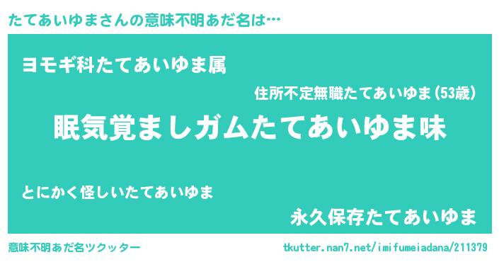 | ヘコむあだ名 | 『たてあいゆま(爆)』『たてお』 |