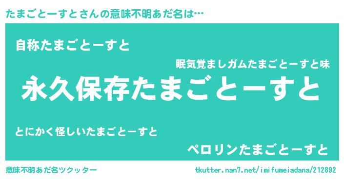 | 胡散臭い通販商品みたいなあだ名 | 『来世でも幸せになれる水素水…その名も「たまごとーすと」』 |