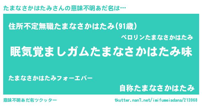 | 欧米人風あだ名 | 『ダニエルたまなさかはたみ』 |