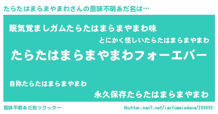 | ファンタジー風あだ名 | 『エターナルタラタハマラマヤマワー』 |