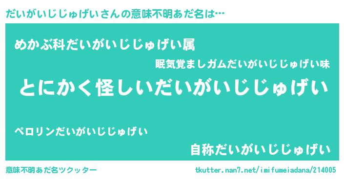 | 欧米人風あだ名 | 『ウサインだいがいじじゅげい』 |