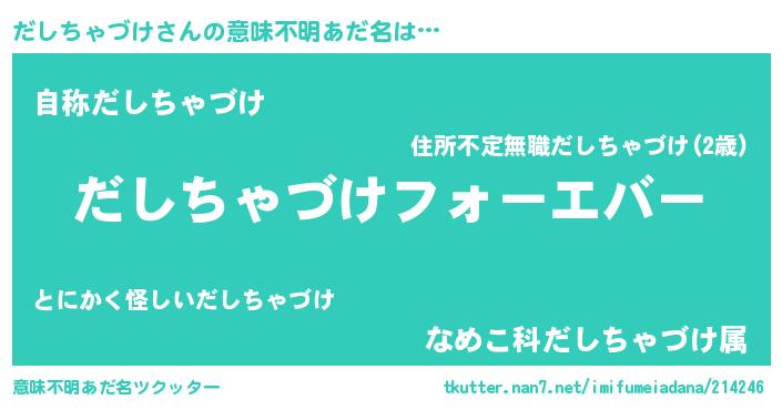 | ファンタジー風あだ名 | 『エターナルダシチャヅケー』 |
