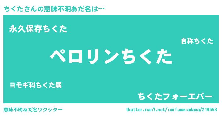 | 男性向けラノベタイトル風あだ名 | 『緋弾のチクタ』『ちくたの憂鬱』 |