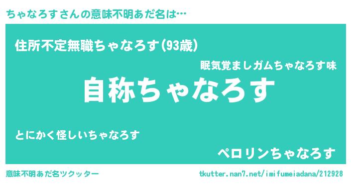 | 女子向けラノベタイトル風あだ名 | 『ちゃなろすなんてお断りですっ。』 |