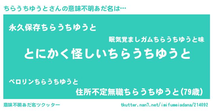 | ヘコむあだ名 | 『ちらを』『ちらうちゆうと(笑)』 |