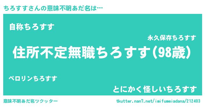 | ヘコむあだ名 | 『ちろぷりん』『ちろすす(震え声)』 |