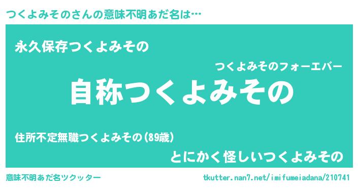 | ヘコむあだ名 | 『つくよみその(遠い目)』『つくっぺ』 |