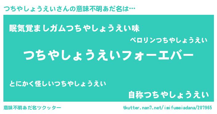 | 男性向けラノベタイトル風あだ名 | 『うちのつちやしょうえいが世界を掌握している!』 |
