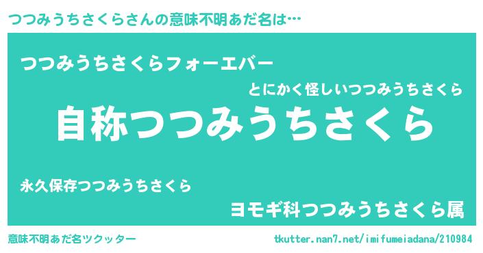 | 男性向けラノベタイトル風あだ名 | 『つつみうちさくらに滅ぼされるだけの簡単なお仕事です』 |