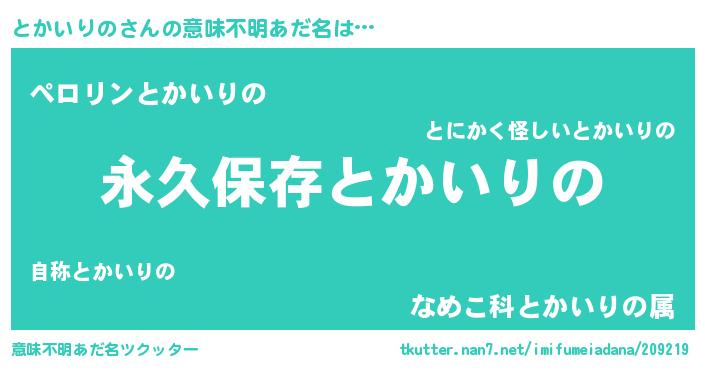 | ヘコむあだ名 | 『とかいりの(笑)』『とかっふぃ~』 |