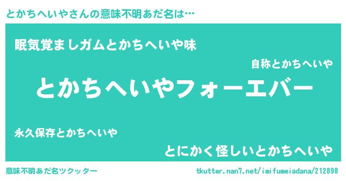 | ファンタジー風あだ名 | 『エターナルトカチヘイヤー』 |