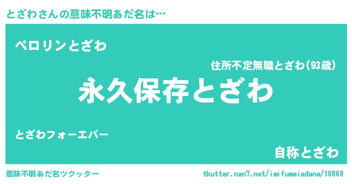 | ヘコむあだ名 | 『とざわ(苦笑)』『とざにゅー』 |