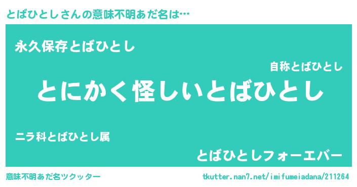 | 胡散臭い通販商品みたいなあだ名 | 『信頼と実績のサプリメント…その名も「とばひとし」』 |