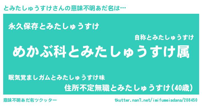 | ヒーロー風カッコイイあだ名 | 『ネオトミタシュウスケ』『仮面トミダー』 |