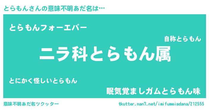 | 男性向けラノベタイトル風あだ名 | 『とらもんに滅ぼされるだけの簡単なお仕事です』 |