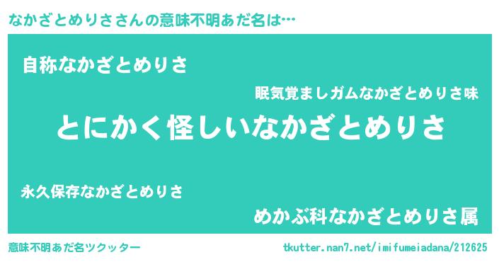 | 男性向けラノベタイトル風あだ名 | 『なかざとめりさの嫁は女の子じゃないと思った?』 |