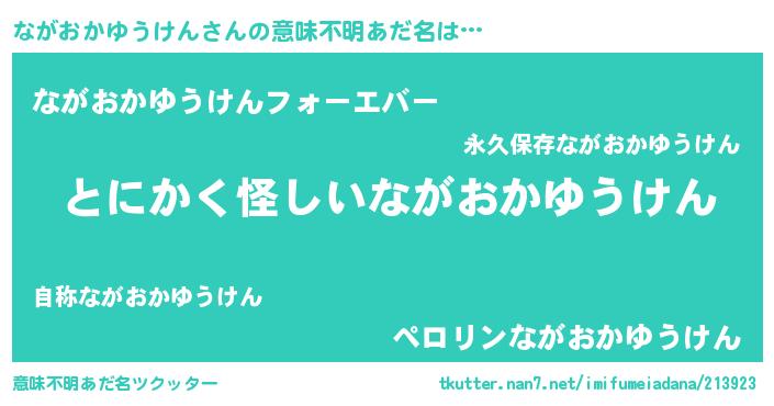 | 欧米人風あだ名 | 『ながおかゆうけん・ステッグマイヤー』 |