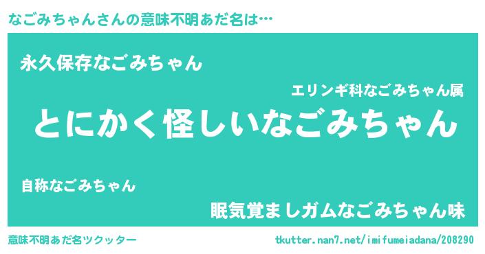 | ポケモン風あだ名 | 『ナゴゴンZ』『ヒナゴミチャン』 |