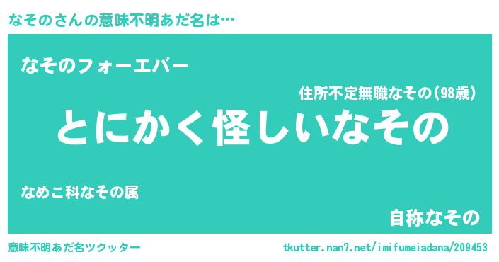 | 男性向けラノベタイトル風あだ名 | 『なそのの嫁は女の子じゃないと思った?』 |