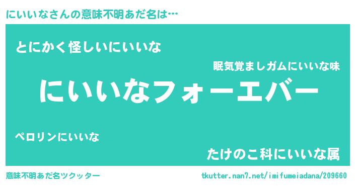| 男性向けラノベタイトル風あだ名 | 『うちのにいいなが世界を掌握している!』 |