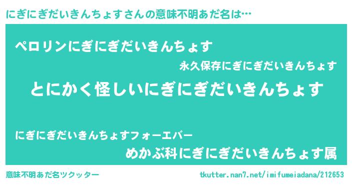 | 男性向けラノベタイトル風あだ名 | 『にぎにぎだいきんちょすの嫁は女の子じゃないと思った?』 |