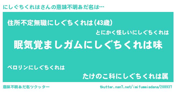| 男性向けラノベタイトル風あだ名 | 『おまえをオタクにしてやるから、俺をにしぐちくれはにしてくれ! 』 |