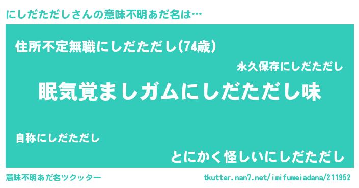 | 欧米人風あだ名 | 『にしだただし・ステッグマイヤー』 |