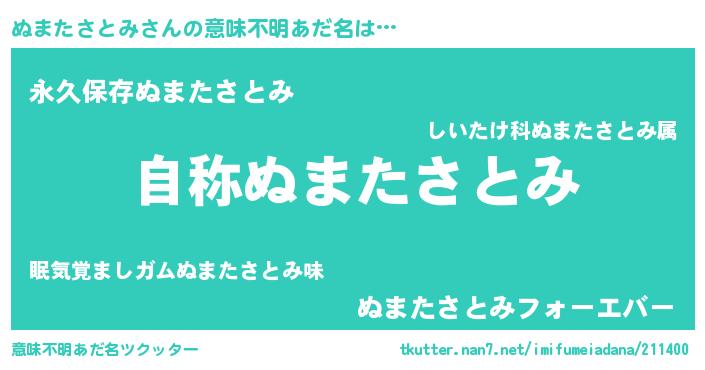 | 女子向けラノベタイトル風あだ名 | 『ぬまたさとみストレイドッグス』 |