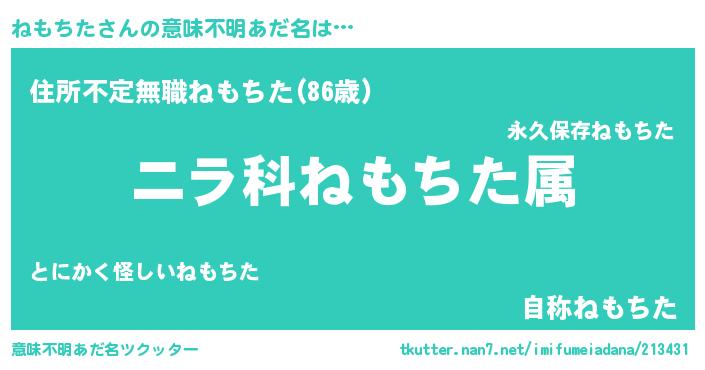 | 胡散臭い通販商品みたいなあだ名 | 『あなたにだけ特別に提供する100年もののヴィンテージワイン…その名も「ねもちた」』 |