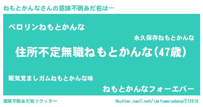 | 男性向けラノベタイトル風あだ名 | 『この素晴らしい世界にねもとかんなを!』 |